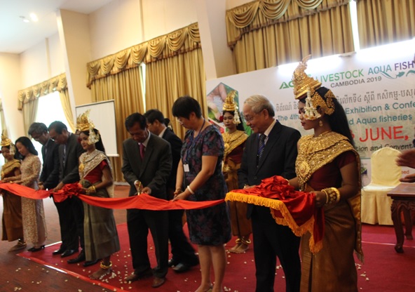 Đại diện bộ Nông nghiệp Campuchia cắt băng khai mạc triển lãm