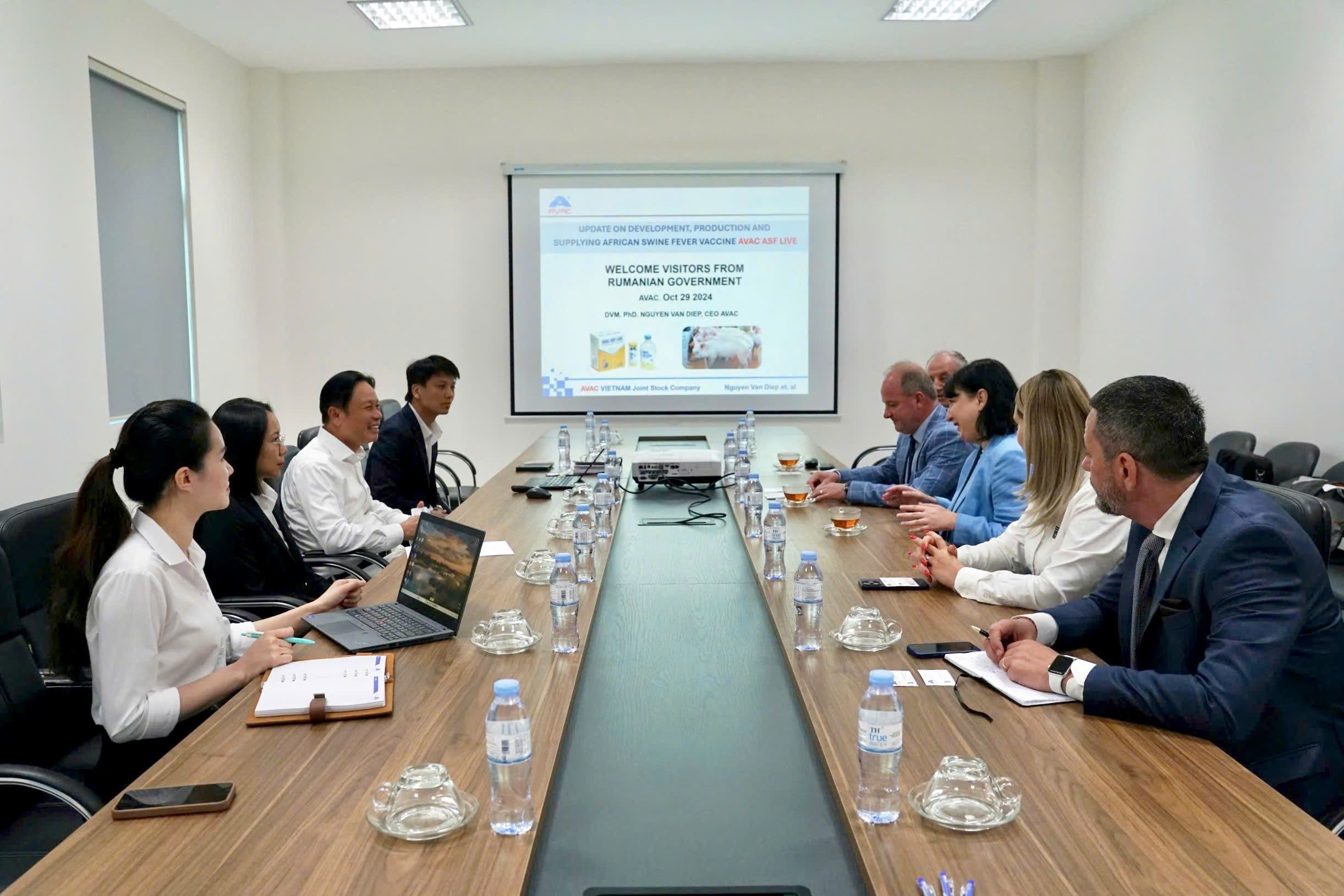Ngày 29/10/2024, đoàn đại biểu Romania đã đến thăm và làm việc tại nhà máy sản xuất vắc xin của AVAC Việt Nam. Đoàn gồm bốn thành viên, trong đó có Trưởng Khoa Công nghiệp Thực phẩm và Du lịch - nguyên Chủ tịch Cơ quan An toàn Thực phẩm và Vệ sinh Thú Y Romania, cùng các chuyên gia nghiên cứu về vi rút dịch tả lợn châu Phi.
