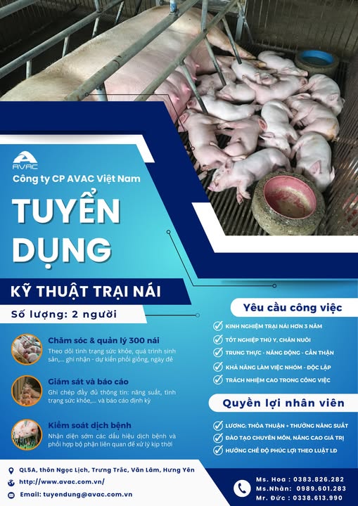 THÔNG BÁO TUYỂN DỤNG KỸ THUẬT TRẠI NÁI
