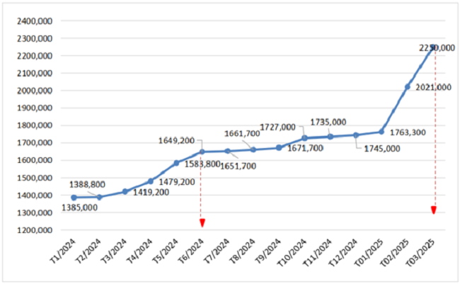Ông Phạm Kim Đăng, Phó Cục trưởng Cục Chăn nuôi và thú y cho hay năm 2024, giá lợn con trung bình trên cả nước dao động trong khoảng 1,2-1,4 triệu đồng/con trọng lượng 7-10 kg. Đến quý 1 năm 2025, giá lợn con đã lên bình quân 2,25 triệu đồng/con, tăng thêm 1 triệu đồng/con so với cùng kỳ năm trước.