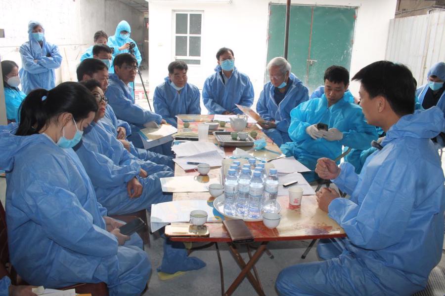 Các nhà khoa học nghe và nhận xét về kết quả tiêm vaccine cho lợn nái tại trang trại của AVAC. Ảnh CK.
