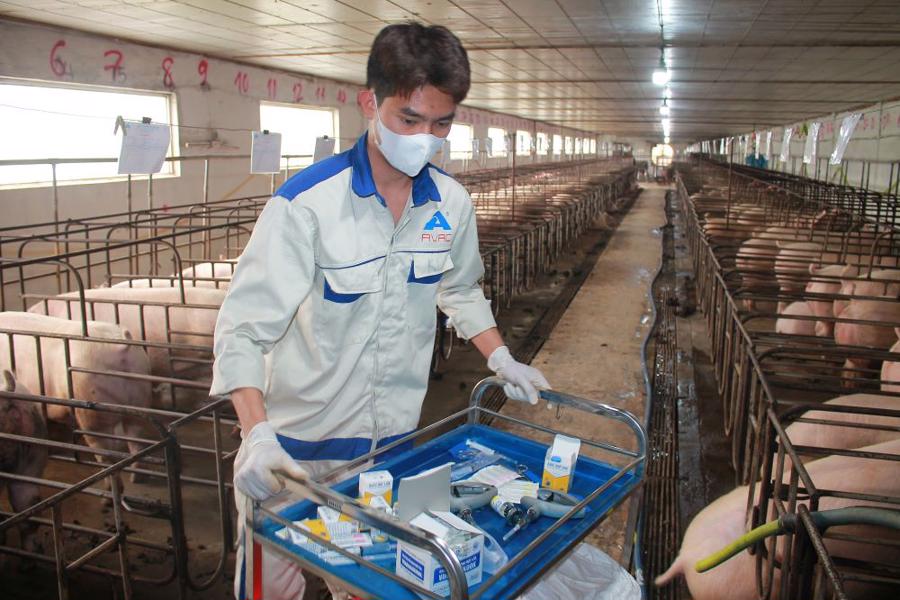 Tại trại chăn nuôi ở xã Tân Tiến, huyện Văn Giang, tỉnh Hưng Yên, vaccine AVAC ASF Live mũi thứ 2 được tiêm cho toàn bộ 270 lợn nái của trang trại.