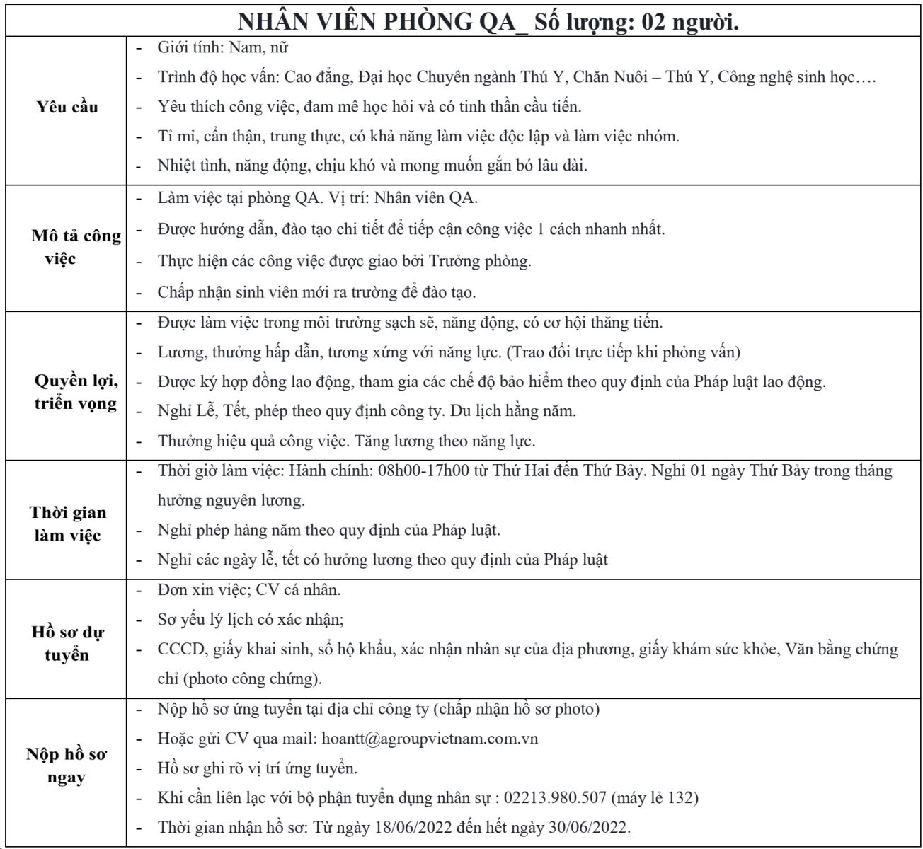THÔNG BÁO TUYỂN DỤNG NHÂN VIÊN QA